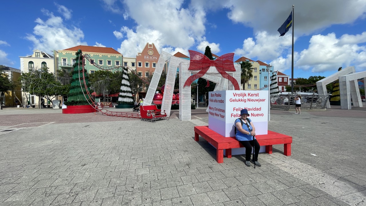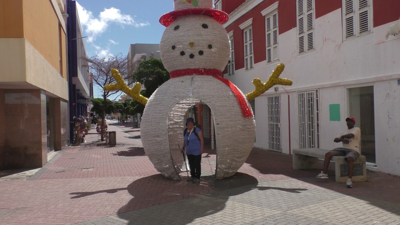 We lopen via de 3-little-birds (wie kent ze niet), langs een grote sneeuwpop en de beroemde letters Curaçao weer langzaam terug naar de pontjesbrug. Drinken nog een kop koffie in het fort en besluiten dan toch weer naar de koelte van de boot te gaan. Voor deze warmte zijn wij Hollanders nou eenmaal niet gemaakt.