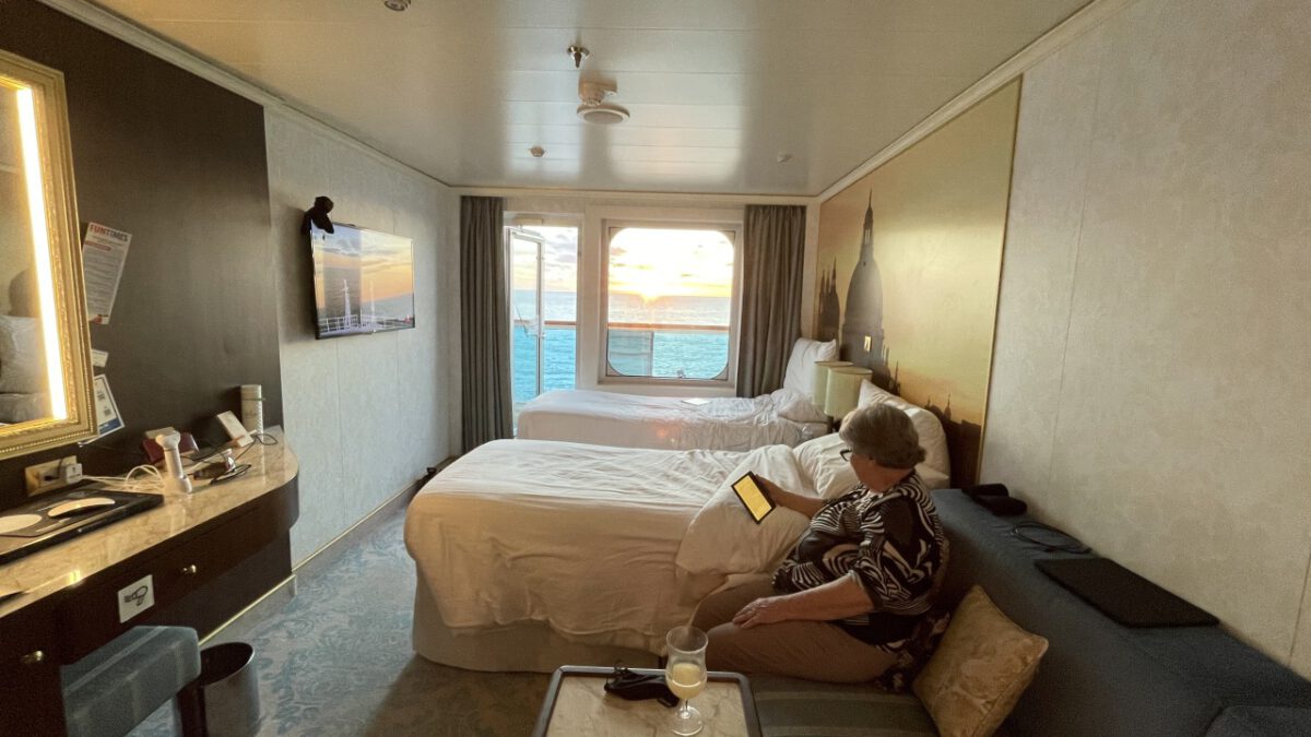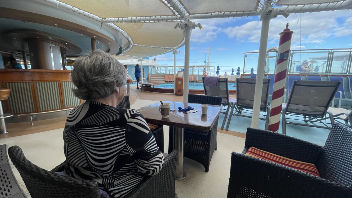 Dag 5 en wederom een zeedag. We moeten nogal wat zeemijlen afleggen vanaf New York naar onze eerste stop, St. Thomas op de Amerikaanse Maagdeneilanden. Maar we merken dat we de goede kant op gaan, want de temperatuur is aan het oplopen. Daar we gisteren nog rond het vriespunt hadden een ijskoude wind, was het vanochtend al een heel stuk warmer. Zo warm zelfs dat we al buiten hebben ontbeten. We hadden toen nog wel de trui aan, maar die is nog geen uur na het ontbijt omgeruild door een t-shirt en korte broek. De jassen hebben we nu zelfs al in de koffer zitten, want die hebben we pas weer in Nederland nodig.