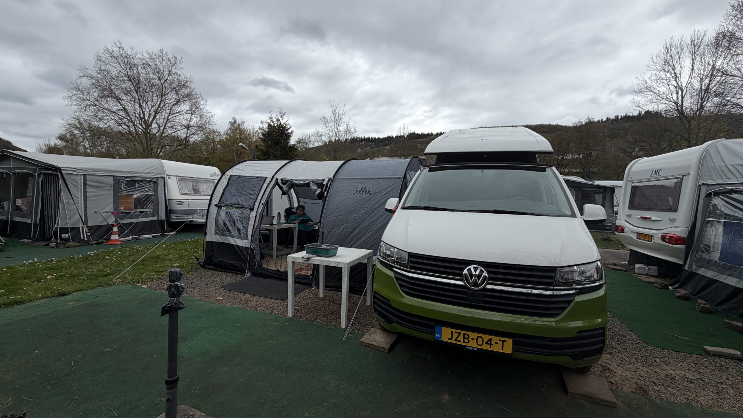 Het begon allemaal met even “snel” neerzetten. Camper erop, beetje schuiven, klaar. Dachten we. Maar ja, dan heb je nog zoiets als een voortent die óók ergens logisch moet staan. En het liefst zo dat je nog een beetje normaal in en uit kunt rijden. Dat is op onze plek sowieso al een uitdaging, want ruimte… tja, laten we zeggen dat het geen voetbalveld is.