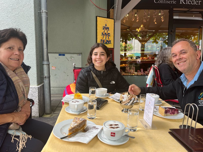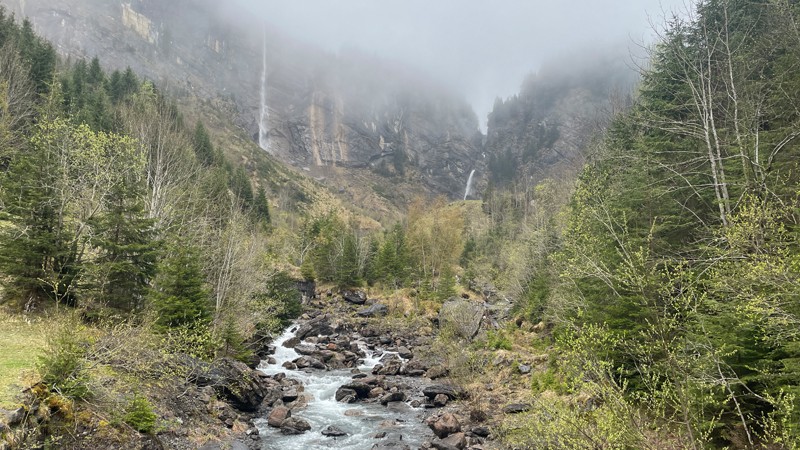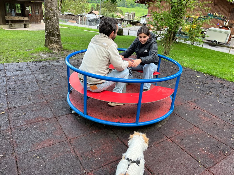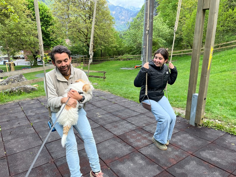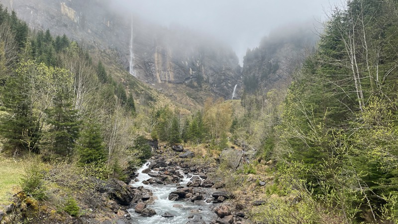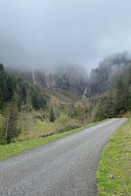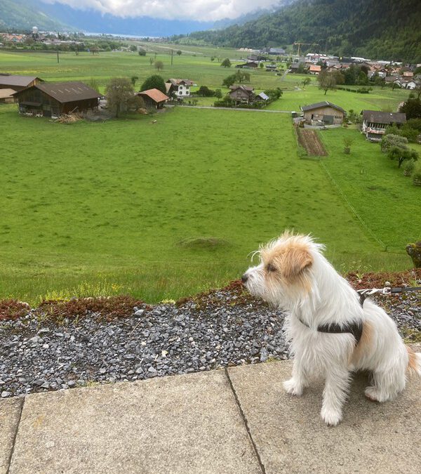 De wandelaars zijn naar een ruine gelopen en hebben onderweg erg veel lol gehad met Yess, een koe-bel en een paar schapen en koeien…. Yess vindt het maar vreemde beesten. De Visjes zijn met de bus naar Interlaken gereden, hebben een heerlijk Cappuccino gedronken en wat cultuur gesnoven in dit mooie stadje dat tussen het Meer van Brienz en het Meer van Thun ligt.Oscar is met de mountainbike naar de Masu Twin Watervals gereden dat achter het dorpje Saxeten ligt. Het ligt wel op een hoogte van rond de 1200 meter en de route erna toe was soms tegen de 8%. Maar met een beetje hulp van de ondersteunde electromotor op de mountainbike was het goed te doen. De route was echt een plaatje en de beloning was dan ook het uitzicht op de 2 watervallen.